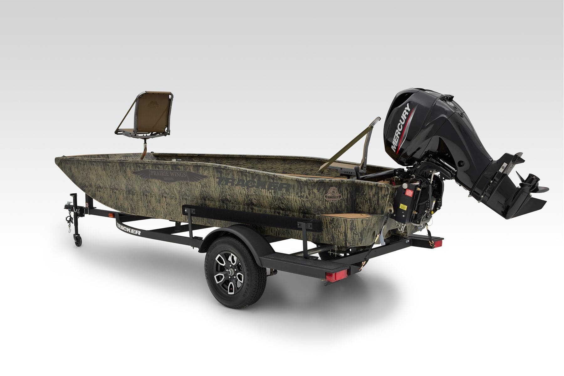 The Tracker Grizzly 1650 T Prairie Wings Edition is a 16-foot aluminum jon boat designed for rugged versatility in hunting, fishing, and gear transport.